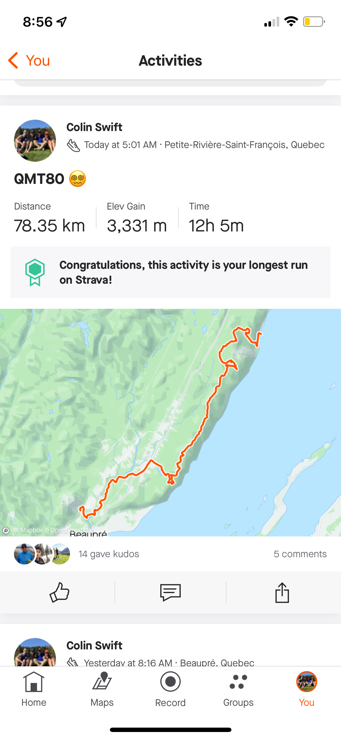 We took off a couple days before the race, had a fun road trip up through New Brunswick and through beautiful Quebec City, and onward to Beaupré.